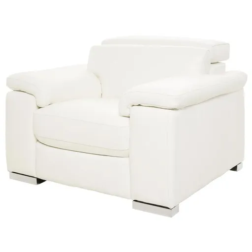 The Charlie White Leather Power Recliner is an essential addition to reaching comfort in your living room. The smooth porcelain white genuine top grain leather where the body touches and knife-edge padded armrests are soothing to the touch while the reclining options are easily activated with the push of a button. A built-in USB port and powered headrest bring even more relaxation to this power recliner.