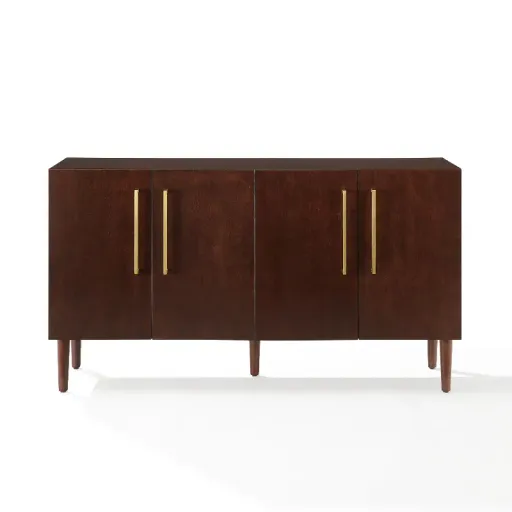 Bring mid-century vibes to your dining room or kitchen with the Everett dining sideboard. Perfect for tucking away dishes and barware, this sideboard provides two large cabinets with adjustable shelving. Perched atop tapered legs and showcasing classic bar hardware, the Everett sideboard will add polish and style to any room. Available for Online Purchase Only. Ships Directly from the Manufacturer. RC Willey Delivery is Not Available. Assembly required.