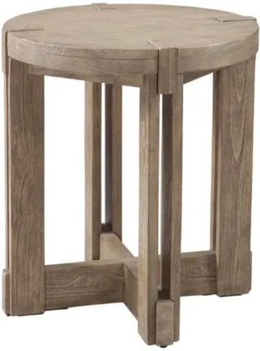 The McGuire end table seamlessly blends modern rustic farmhouse charm with enduring craftsmanship. Crafted from solid mindi wood in a natural finish. The distinctive interlocking wood beams in the base create an open, airy feel while maintaining a substantial presence. The natural finish adds warmth and authenticity to your surroundings.