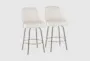 The Marcie 27" Counter Height Stool with Swivel in black metal and white faux leather is a perfect blend of contemporary style and functionality. These stools feature a modern design with gold nailhead trim and a round gold metal footrest, making them an attractive addition to any dining room. The swivel function adds convenience and comfort, enhancing your dining experience.