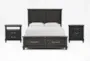 Introducing the Jaxon Espresso King Wood Storage 3 Piece Bedroom Set, perfect for adding a touch of industrial style to your bedroom. This set includes a spacious Eastern King bed with ample storage, a nightstand, and an open nightstand, all crafted from 100% solid pine wood in a rich cafe color. The panel design and storage drawers make this set both functional and stylish.