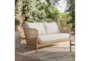 Introducing the Solara Modern Natural Wood Outdoor Loveseat, a stunning addition to any outdoor space. Crafted from acacia wood and 100% polyester fabric, this loveseat offers both style and durability. The loose reversible back cushions provide ultimate comfort and versatility, making it perfect for lounging in your backyard or patio.