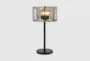 Enhance the ambiance of your bedroom with the 28" Black Metal + Cognac Smoked Crystal Glass Table Lamp. Its sleek black metal base and cognac smoked crystal glass shade create a warm, inviting glow. Perfect for a modern or contemporary setting, this table lamp adds both light and style to your space.