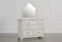 The Kincaid Collection dresser and mirror combination is a great addition to any bedroom. A weathered white finish, ornate bronze hardware, drawers, well-defined bracket feet and molding throughout add to the charm and character of this piece. A sizable mirror is included for added functionality.