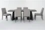 The Astra Black Dining Table with Grey Upholstered Fabric Chair Set for 6 brings a modern touch to your dining room or kitchen. The sleek black heron wood paired with soft grey fabric creates a comfortable and stylish seating arrangement for your family and guests. This 7-piece set is perfect for both intimate dinners and larger gatherings.