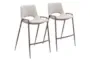 The Desiree Beige Metal Contract Grade 26" Counter Height Stool Set of 2 with Back is a stylish addition to any modern dining room or kitchen. These stools feature a sleek, armless design that complements their beige color and metal construction. Perfect for food prep and serving spaces, these stools provide comfort and functionality.
