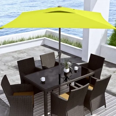 Share special moments in your own backyard with this universal 9ft square patio umbrella. Complete with air vents to ensure your seating area stays cool on hot summer days. Durable steel frame with polyester fabric canopy look great and will withstand the elements of the outdoors. Assembly and storage is simple with a convenient crank system. Pair with a CorLiving umbrella base for additional support.