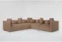 Introducing the Tao Khaki Beige Velvet 115" 5 Piece Modular Sectional, a sophisticated addition to any modern living room. This symmetrical sectional, upholstered in 100% polyester velvet, offers both durability and comfort. The khaki color provides a neutral and warm touch, making it an ideal centerpiece for your home.