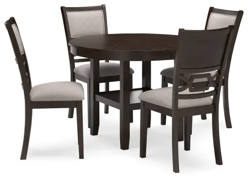Can’t decide between classic and contemporary? Embrace the beauty of transitional style with this casually sophisticated dining table and chairs. The clean-lined profile and traditional cherry finish merge with contrasting upholstery to create a timeless yet on-trend look when guests gather. A discreetly placed lower shelf simply makes great storage sense.