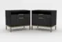 The Kellen Grey 2-Drawer Nightstand Set of 2 brings a modern touch to your bedroom with its sleek design and functional storage solutions. Made from solid mahogany, these nightstands provide durability and a sophisticated look. The black finish adds a contemporary feel, making them a perfect addition to any bedroom suite.