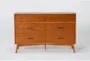 The Alton Cherry II Brown Wood 36" 6 Drawer Dresser brings mid-century modern style to your bedroom. This dresser's sleek design and cherry finish make it a standout piece that complements any decor. Its six spacious drawers provide ample storage for all your essentials.