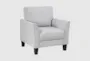 Introducing the Concover Grey Chair, a casual addition to your living room that offers both comfort and style. This accent chair features a soft grey fabric and sturdy pine wood legs, making it a versatile piece for any decor. With its supportive back, comfortable cushion, and flared arms, it's perfect for relaxing after a long day.