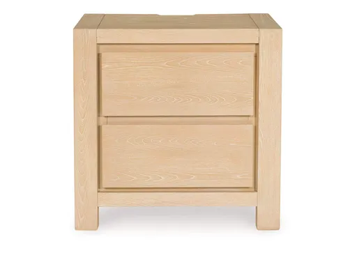 Love casual design with a modern flair? We've got you covered with the striking Whittgate nightstand. Its light natural finish enhances the beautiful wood grain character with a relaxed vibe. Sleek, hardware-free drawers offer storage spots with a contemporary edge, bringing a fresh style awakening to your bedroom.