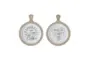 Enhance your hallway with this charming set of 2 round wall decor pieces. Featuring a farmhouse style, these decorations combine white and black colors with metal and wood materials for a rustic yet contemporary look. The curved design adds a unique touch to your space.