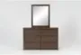 The Nora Brown Wood 6-Drawer Dresser/Mirror is a perfect addition to any casual bedroom setting. Made from solid pine and oak veneers, this dresser offers ample storage with its six spacious drawers and comes complete with a matching mirror. Its brown finish adds a touch of warmth and rustic charm to your space.