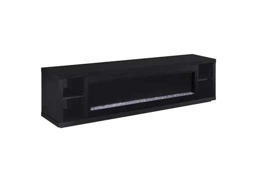 This sleek fireplace media console brings warmth and streamlined storage to contemporary living spaces. A wide electric firebox glows over crushed acrylic crystals, offering fifteen customizable flame colors operated by a wireless remote. Open side compartments with adjustable shelves store devices or dcor, while rear cable management cutouts keep wires out of sight. Finished in classic black and crafted from engineered wood with a laminate veneer, it serves as a refined TV stand or entertainment center. Please note that this console does not include a heat function.