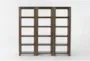 Introducing the Voyage Brown 74" Bookcase Piers Wall Set of 3 by Nate Berkus + Jeremiah Brent. This modern bookcase set is perfect for your hallway or living room, offering a stylish and practical solution for displaying your books and decor. Crafted with cathedral oak veneers and solid hardwood, this set combines durability with a sleek design.