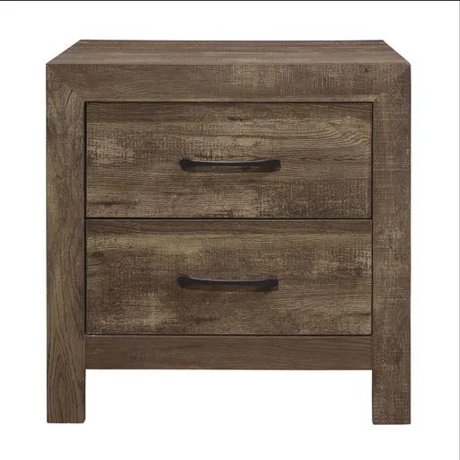 Modern lines and rustic styling combine in this group to create a unique look. The wood texture is really visible with the rustic finish. All storage pieces provide contrast with black metal hardware. Drawers feature dovetail construction. Complete your room with furniture that will truly make a statement.