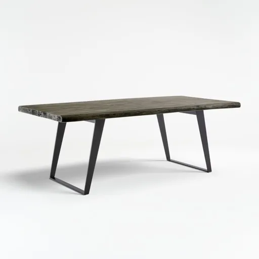 We invite you to revel in the fascinating knots, splits and distinct grain patterns unique to the natural wood showcased in our best-selling Yukon dining table. Made with a blend of modern machinery and traditional handcraftsmanship, the table features planks of live-edge acacia wood tinted grey and braced with the form-meets-function accent of expertly fashioned butterfly joints. Angled, U-shaped steel legs finished in matte antique black provide sturdy support and modern counterpoint to the organically shaped top. Due to its natural characteristics, no Yukon table is alike, making each one a unique celebration of the inherent beauty of natural wood.