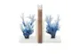 These 7" Blue White Ombre Metal Coral Bookends offer a modern style with a cozy charm, featuring an admiral blue highlight over an ivory white finish. Constructed of solid metal, these bookends provide stability and a durable structure for your books.