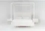 Transform your bedroom with the Austen White Queen Side Storage Wood & Upholstered Platform Canopy 3 Piece Bedroom Set. This traditional set includes a queen-sized canopy bed and two nightstands that offer ample storage and a touch of sophistication. Made from a combination of oak veneer, solid rubberwood, and fabric, this set is designed for durability and comfort.