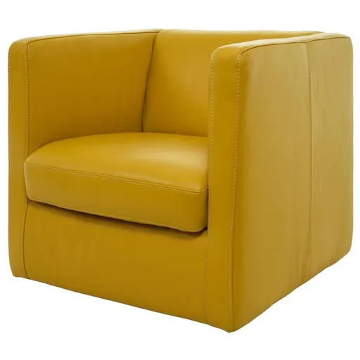 Add some color to your home with the Cute Yellow Accent Chair. This small piece is the final touch to any corner. Its stylish boxed shape seating is enhanced with a mustard yellow genuine leather upholstery.
