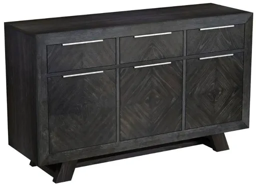 It offers a sleek, modern storage solution with ample cabinet space and clean lines. Its rich charcoal finish adds sophistication, making it a stylish and functional addition to any dining area, perfect for organizing and display.