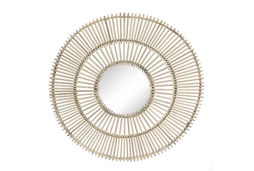 Enhance your living space with the 31 Inch Natural Rattan Mirror Wall Decor, a perfect blend of modern and boho styles. This brown, metal-framed mirror adds a touch of elegance and warmth to any room, making it a versatile accent piece for various interior designs.