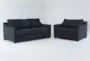 Porthos Midnight Navy Blue Fabric Sofa / Twin Memory Foam Armchair Sleeper Set | Loose Reversible Back | Furnzy.com - Shop local furniture stores in one place
