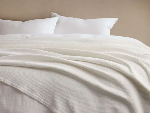 Paden Linen Ribbed Bed Blanket WHITE QUEEN