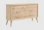 The Nestor 6-Drawer Dresser in Natural Oak is a perfect blend of modern and mid-century modern styles, designed to enhance your bedroom with its sleek and functional design. Crafted from solid Asian hardwood and engineered wood, this dresser offers durability and a natural aesthetic. The six spacious drawers, equipped with metal on metal center glides, provide ample storage space, while the brushed nickel tone knobs and bar pulls add a touch of elegance.