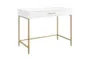 The Modern White + Gold 36" Small Mini Storage Writing Desk is perfect for your office or workspace. Its sleek design combines functionality with style, making it an ideal addition to any modern setting. The desk features a convenient drawer for storage, helping you keep your workspace organized and clutter-free.