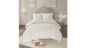 The Laetitia Tufted Cotton Chenille Medallion Duvet Cover Set provides an alluring shabby chic update to your bedroom. This globally inspired duvet cover features a 100% cotton face and reverse with a tufted chenille medallion centered on top of the bed. The matching shams (1 in Twin/Twin XL size) coordinate with the cotton duvet cover to complete the boho look. Perfect for all season use, this bedding set is also OEKO-TEX certified, meaning it does not contain any harmful substances or chemicals to ensure quality comfort and wellness. A button closure secures a comforter insert within the duvet cover and inside corner ties prevent it from shifting (insert is NOT included).
