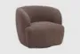 The Govan Brown Swivel Barrel Chair is a modern piece that combines comfort and style. Upholstered in a shearling style fabric, this chair offers a cozy seating experience. Its 360-degree swivel base and armrest support make it a versatile addition to any living space.