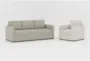 Introducing the Mathers Mocha Vegan Faux Leather 91" Queen Sleeper Sofa and Mathers Cream Beige Fabric 37" Arm Chair. Perfect for any modern living room, this combination offers both style and functionality. The sofa features a queen sleeper design, ensuring comfort and convenience for overnight guests. The arm chair provides a cozy spot to relax, with loose reversible back cushions for added versatility.