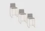 Enhance your dining room or kitchen with the Ian Grey 26" Fabric + Gold Metal Frame High Back Counter Height Stool Set of 3. These modern, armless stools feature a sophisticated grey fabric and a sturdy gold metal frame, making them a stylish and practical addition to any food prep or serving space.