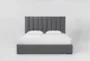 Transform your bedroom with the Vera Dream Grey Vertical Channel 52"H King Upholstered Platform Bed. This modern bed features a sleek design that adds a touch of sophistication to any sleeping space. The grey fabric upholstery and vertical channel tufting create a stylish and comfortable retreat.