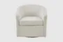 Experience the perfect blend of comfort and style with the Amber Ivory White Fabric Swivel Barrel Chair. This casual swivel chair features a round shape and a firm comfort level, making it an ideal addition to your bedroom or living room. The ivory fabric, composed of a durable mix of polyester, rayon, and linen, adds a touch of sophistication to any space.