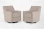 Experience ultimate comfort and versatility with the Belinha II Taupe Beige Fabric Swivel Glider Arm Chairs Set of 2. These chairs are designed to provide a cozy and relaxing seating option for your living room. The Panama Taupe fabric is both durable and soft, promising long-lasting use and comfort.