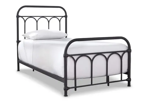 Looking to bring back a sense of bygone charm? Dream it, live it with the Nashburg twin metal bed. Matte black frame with moulded "fittings" brilliantly mimics wrought-iron beds from yesteryear for a look that’s perfect for your modern farmhouse or cottage-quaint escape.