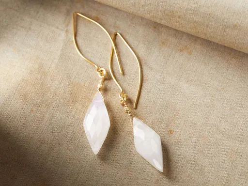 With soft shades of cloudy white, faceted moonstones hang from our Kira Earrings, complemented by 22kt gold-vermeil. Inspired by stars and celestial bodies drifting through the night sky, jewelry artisan Robindira Unsworth, from Petaluma, California, has handcrafted this one-of-a-kind Holiday Collection, combining her rustic aesthetic with unique, natural materials.