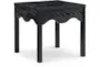 The Flora Modern Black 24" Scalloped Curve End Table is a stylish addition to any living room. Its modern design and black oak veneer finish make it a versatile piece that complements various decor styles. The scalloped edges add a unique touch to this square-shaped table.