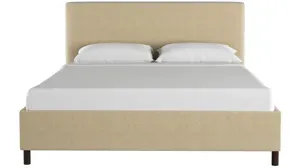 Just because the Valerie Platform Bed goes with everything doesn't mean it lacks in style. This simple, low profile piece stands out because the headboard and bed rails are upholstered in a quality Textured Linen fabric that holds its own as a design feature. The custom made piece has a square shape, and is manufactured in Illinois. Not only is the included wooden slat system easy to incorporate onto the metal frame, it also makes adding a box spring unnecessary. Invest in a platform bed that is well made-and a style that will last you through several remodels.