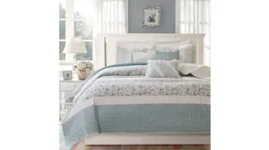 The Dawn 9 Piece Cotton Percale Duvet Cover Set offers a shabby chic update to your bedroom decor. A paisley print is featured on the cotton duvet cover with pintucked fabric separated by lace taping embellishments. Around the edge, a ruched flange adds a graceful touch, for a charming cottage look. Matching shams mirror the design of the duvet cover, while two solid Euro shams complement the top of the bed. Three decorative pillows and a solid bed skirt complete this farmhouse duvet cover set. This bedding set is also OEKO-TEX certified, meaning it does not contain any harmful substances or chemicals to ensure quality comfort and wellness. A button closure secures a comforter insert within the duvet cover and inside corner ties help prevent it from shifting (insert is NOT included). A coordinating shower curtain is available and sold separately.