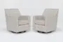 The Belinha II Oyster Beige Fabric Swivel Glider Arm Chairs Set of 2 offer a comfortable and versatile seating option for any room. Upholstered in a soft Inca Oyster fabric made from 100% polyester, these chairs are designed to withstand high-traffic areas while maintaining their quality. The swivel feature adds functionality, making these chairs perfect for relaxing in your living room, bedroom, or dorm.