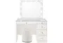 Mya White Wood Glass Top 5-Drawer Storage Bedroom Makeup Vanity Kids Desk Set With Lighted LED Mirror & Swivel Round Button Tufted Stool | Furnzy.com - Shop local furniture stores in one place