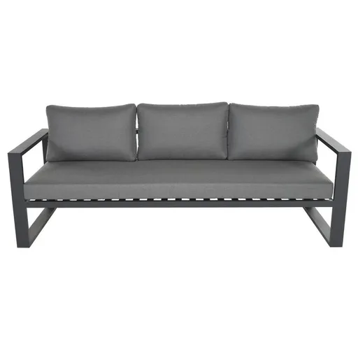 You'll love the look and feel of the Mykonos Dark Gray Sofa. This powder coated aluminum construction sofa features polyester and acrylic blend cushions. Its modern style and two-tone design make it the ideal choice for your indoor or outdoor decor.