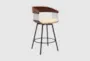 Gloria 27" Swivel Walnut Wood Counter Height Stool In Cream Faux Leather With Black Metal | Performance Fabric