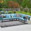 Experience the oversized comfort and structural strength of our exclusive Montecito Collection, featuring a handmade aluminum frame with a durable multi-step powder-coated and oven-baked clear coat finish. Each piece in this 4 piece sectional is built by laser welding to create fully welded and braced frames with zero weld marks. They feature PVC sling seat suspenion and include oversized deluxe Sunbrella® acrylic cushions. The 45° corner club chair adds extra width and comfort to the sectional. The textilene material's flexibility and sturdiness make it a comfortable material for seating.