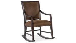 Inspired by the natural beauty of American wilderness landscapes, the Big Sky Rocking Chair is vintage, rustic, and relaxing. Featuring a leather seat and back and dramatic nailhead trim, the arms, stretchers and rockers are finished in charred timber, a wire-brushed black evoking the restorative beauty of a fire-ravaged forest.
